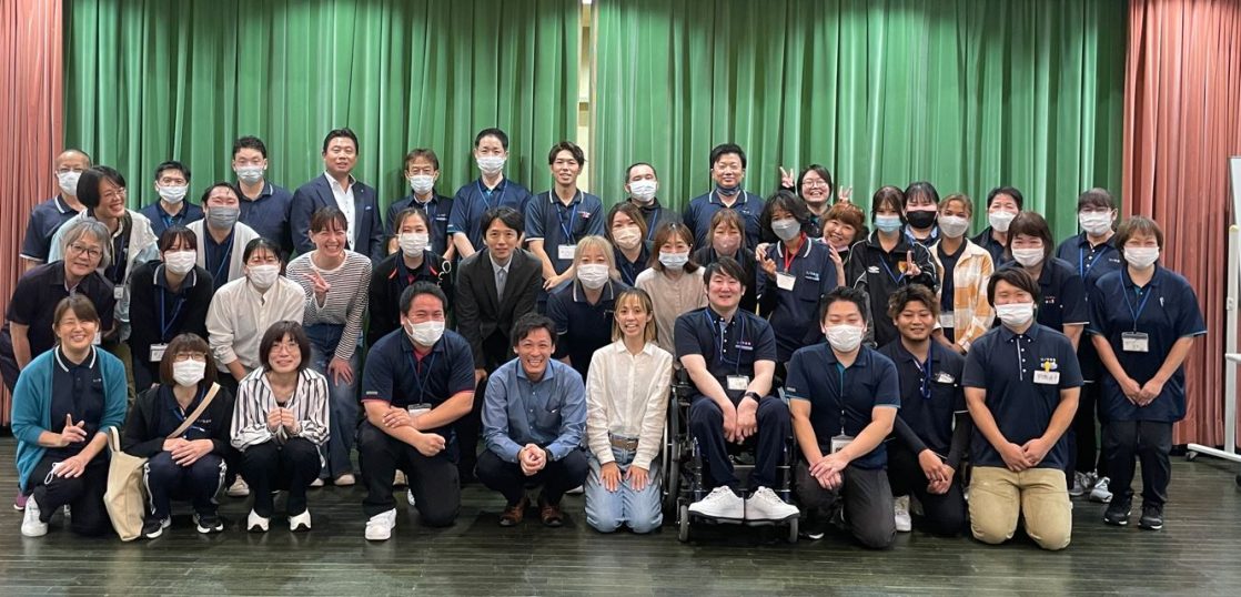 当日は、介護現場で日々ご利用者様と向き合うスタッフの皆さまにご参加いただき、会場には終始、明るい笑顔と前向きなエネルギーが溢れていました。
